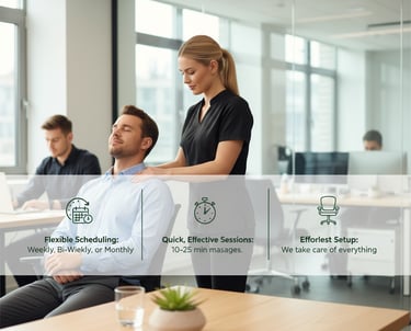 It’s a customized on-site relaxation experience designed to bring comfort and well-being directly to your team at the workplace.